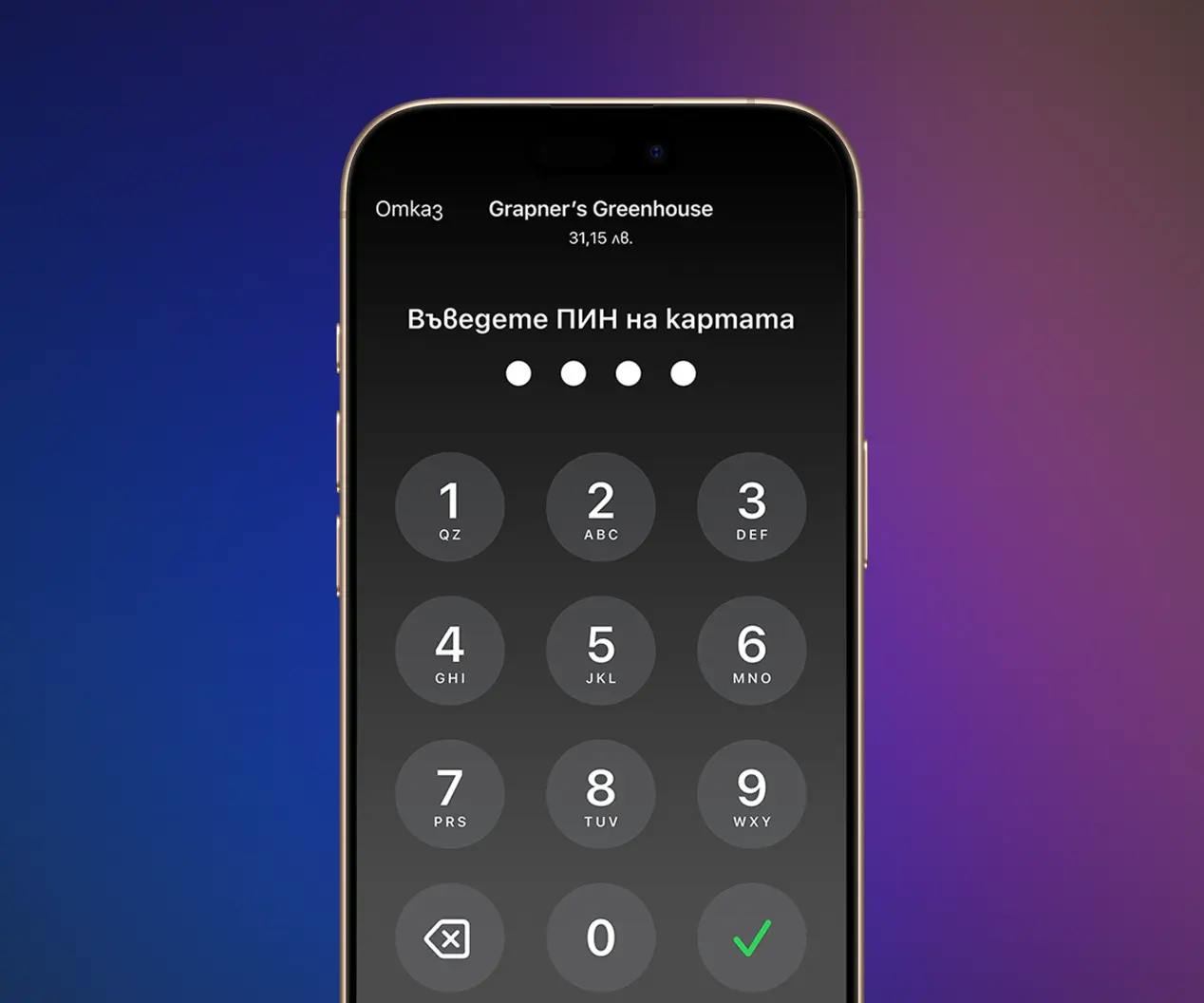 За клиенти, които се нуждаят от зрителна или друга помощ, Tap to Pay на iPhone има вградени опции за достъпност, които им помагат да въведат ПИН-а си по сигурен начин. Аудио инструкции насочват клиентите да начертаят своя ПИН на екрана или да покажат всяка цифра чрез докосване – като докоснат веднъж за 1, два пъти за 2 и т.н. За да подадат ПИН-а си, просто трябва да плъзнат по екрана надясно с два пръста.