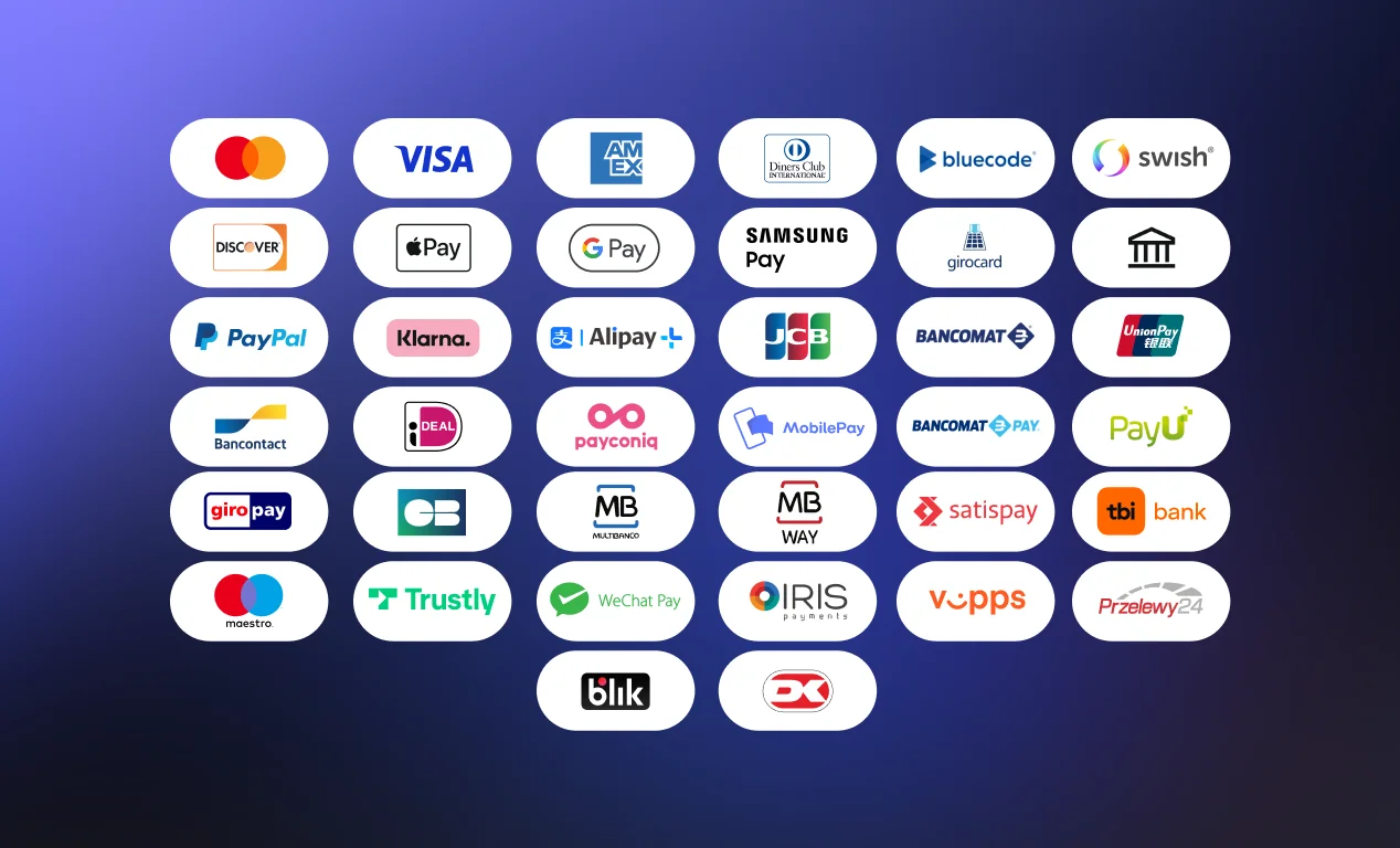 Wide selection of payment methods
