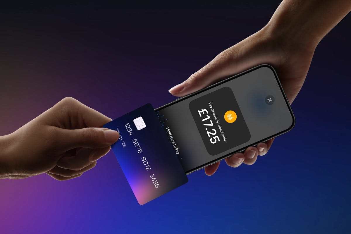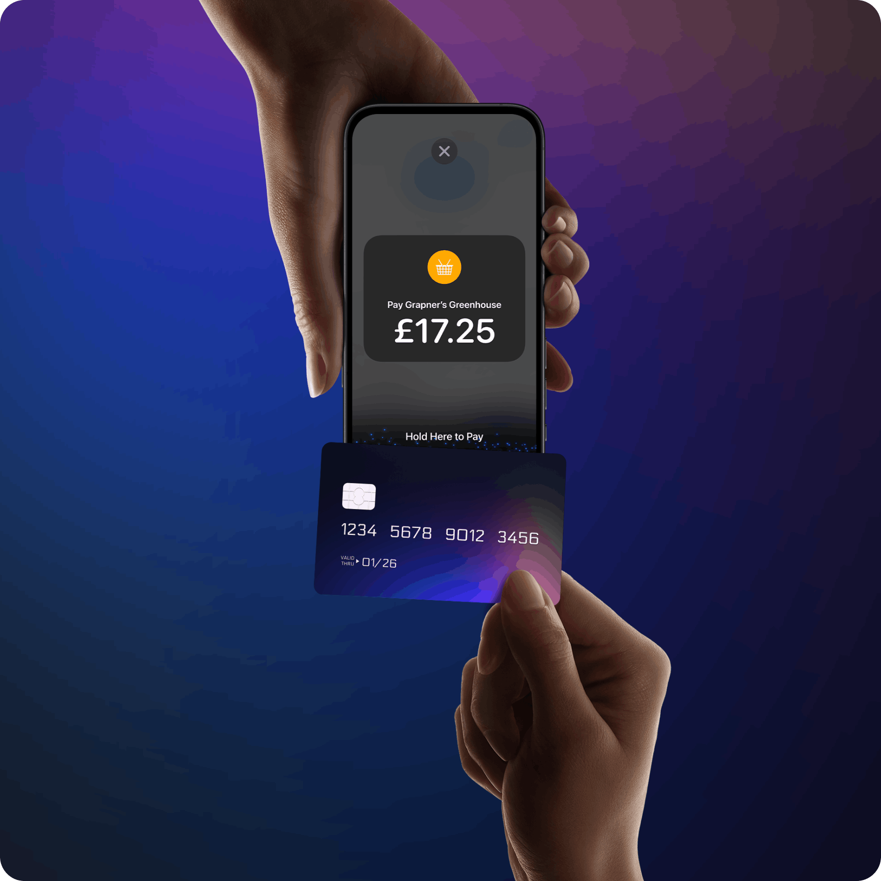 - Your customer holds their card horizontally or mobile device at the top of your iPhone, over the contactless symbol.