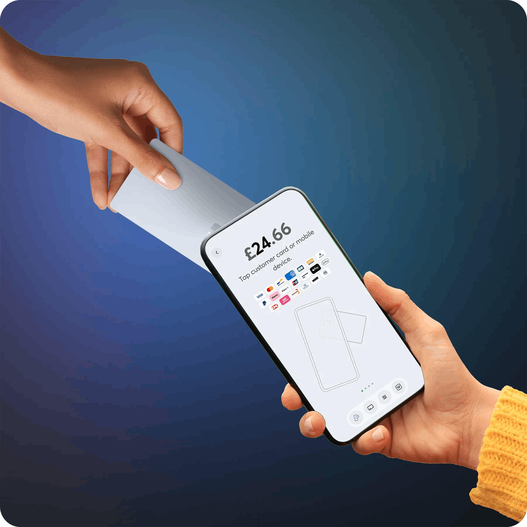 Card payments are accepted simply by tapping customers’ contactless cards, digital wallets, or wearables on the back of your smartphone using the NFC technology.