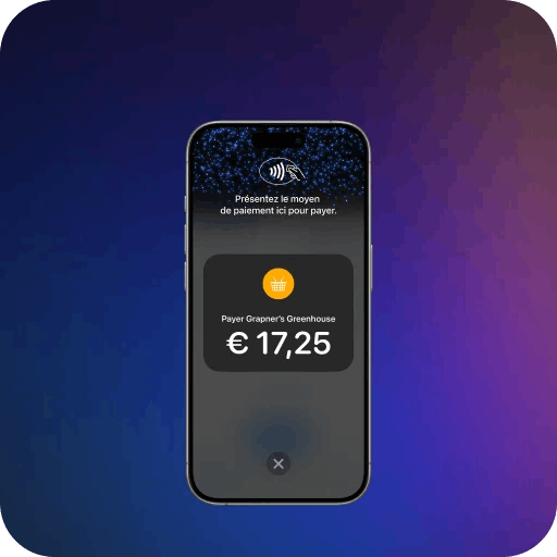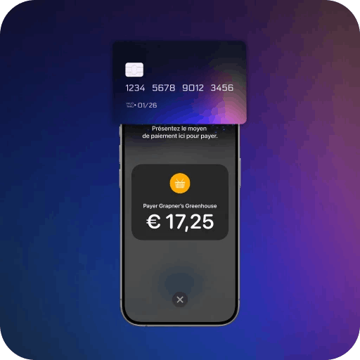 Votre client tient sa carte horizontalement ou son portefeuille numérique en haut de votre iPhone, au-dessus du symbole sans contact.