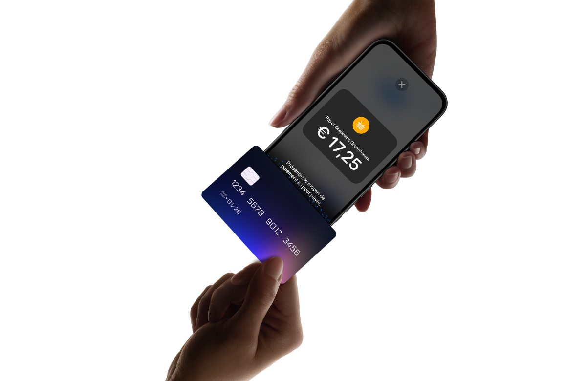 Votre client tient sa carte horizontalement ou son portefeuille numérique en haut de votre iPhone, au-dessus du symbole sans contact.