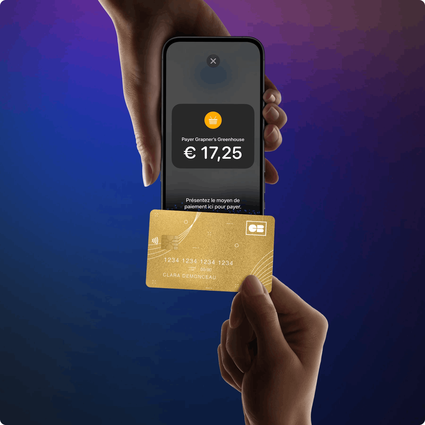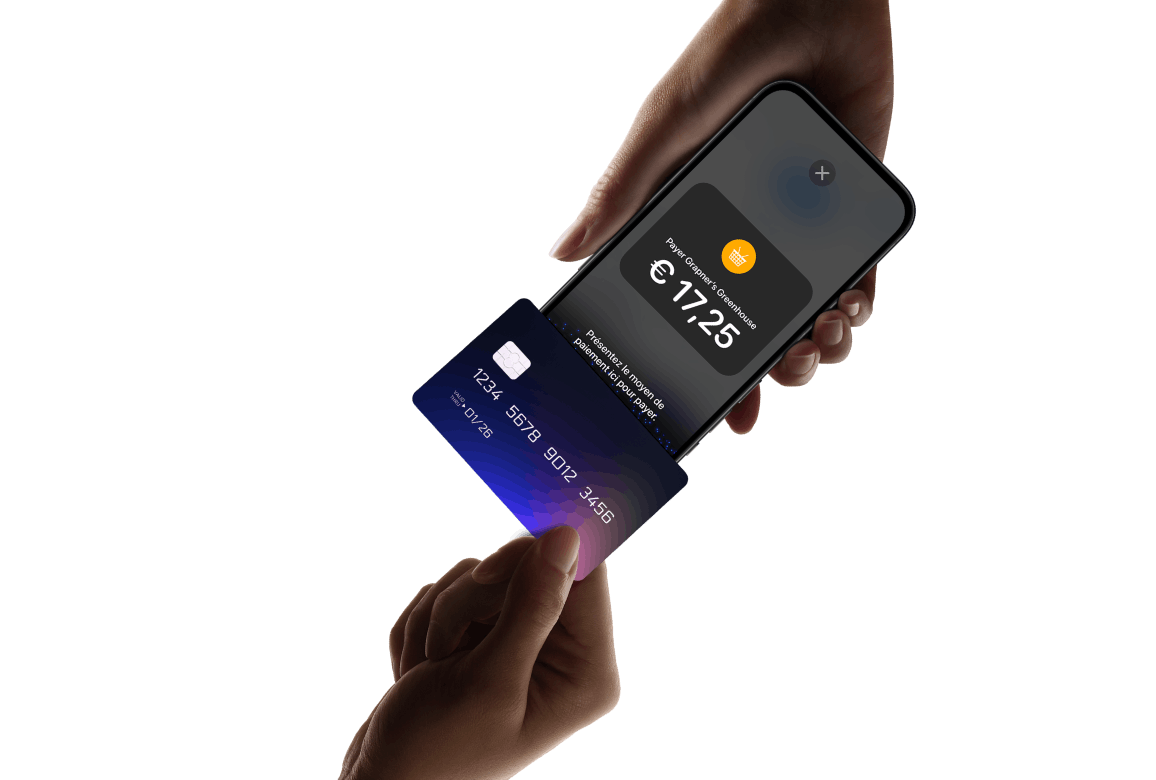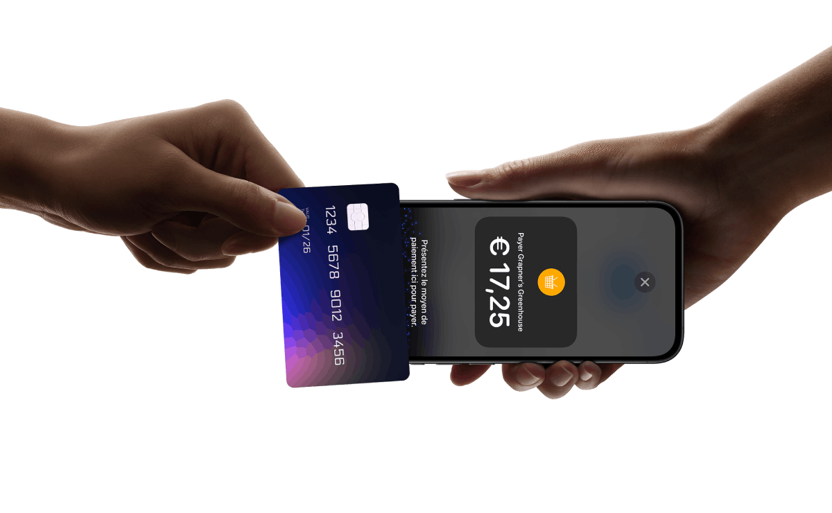 Votre client tient sa carte horizontalement ou son portefeuille numérique en haut de votre iPhone, au-dessus du symbole sans contact.