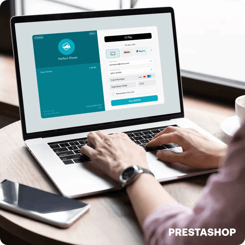 Seamlessly process payments in your PrestaShop store with Viva.com Smart Checkout.